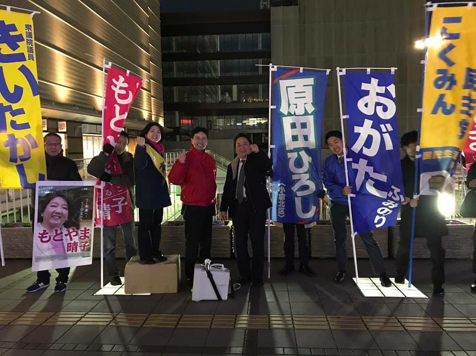 街頭宣伝には北九州市議補選(小倉北区)への無所属(国民民主党推薦)での挑戦準備を進める「もとやま晴子」さんも参加しました。